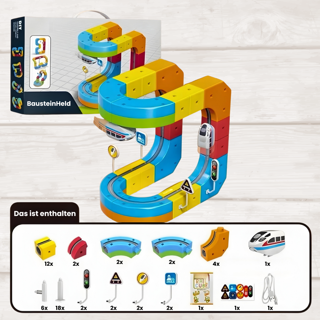 Ja. Die Kombination aus aktivem Bauen und der Faszination des elektrischen Zugbetriebs sorgt für ein tiefes, aktives Engagement, das passive Bildschirmzeit erfolgreich ersetzt.